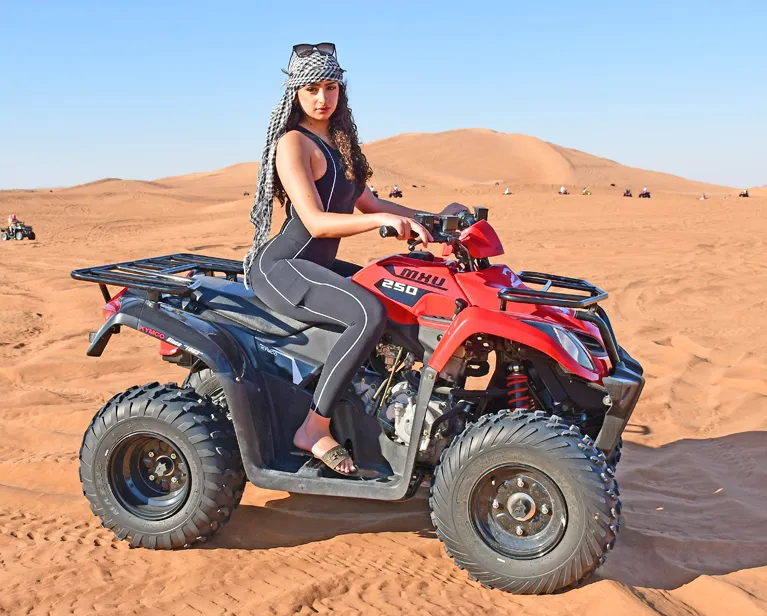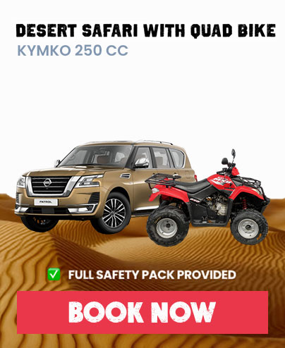 During quad bike rental Dubai, we ensure that the ride goes as seamlessly as possible by ensuring full safety. Our ATV tour Dubai, dune buggy rides Dubai, and red dune bashing are all conducted under the strict guidance of expert professionals. You can freely choose from a quad bike safari Dubai, or a classic ATV ride Dubai, we guarantee you with the desert safari cheap price packages without compromising on the packages. This is your chance to experience the golden dunes during buggy dubai and quad bike ride dubai services, both are beginner-friendly if you follow all the expert supervision given. Enjoy the excitement of red dune bashing, desert buggy Dubai adventures, and the best desert safaris in Dubai, all at a competitive desert safari price. With our professional team guiding every quad bike safari and desert adventure Dubai, safety and fun go hand in hand. Book your desert safari with a quad bike today and discover why we’re the top choice for thrilling yet safe desert safaris Dubai.